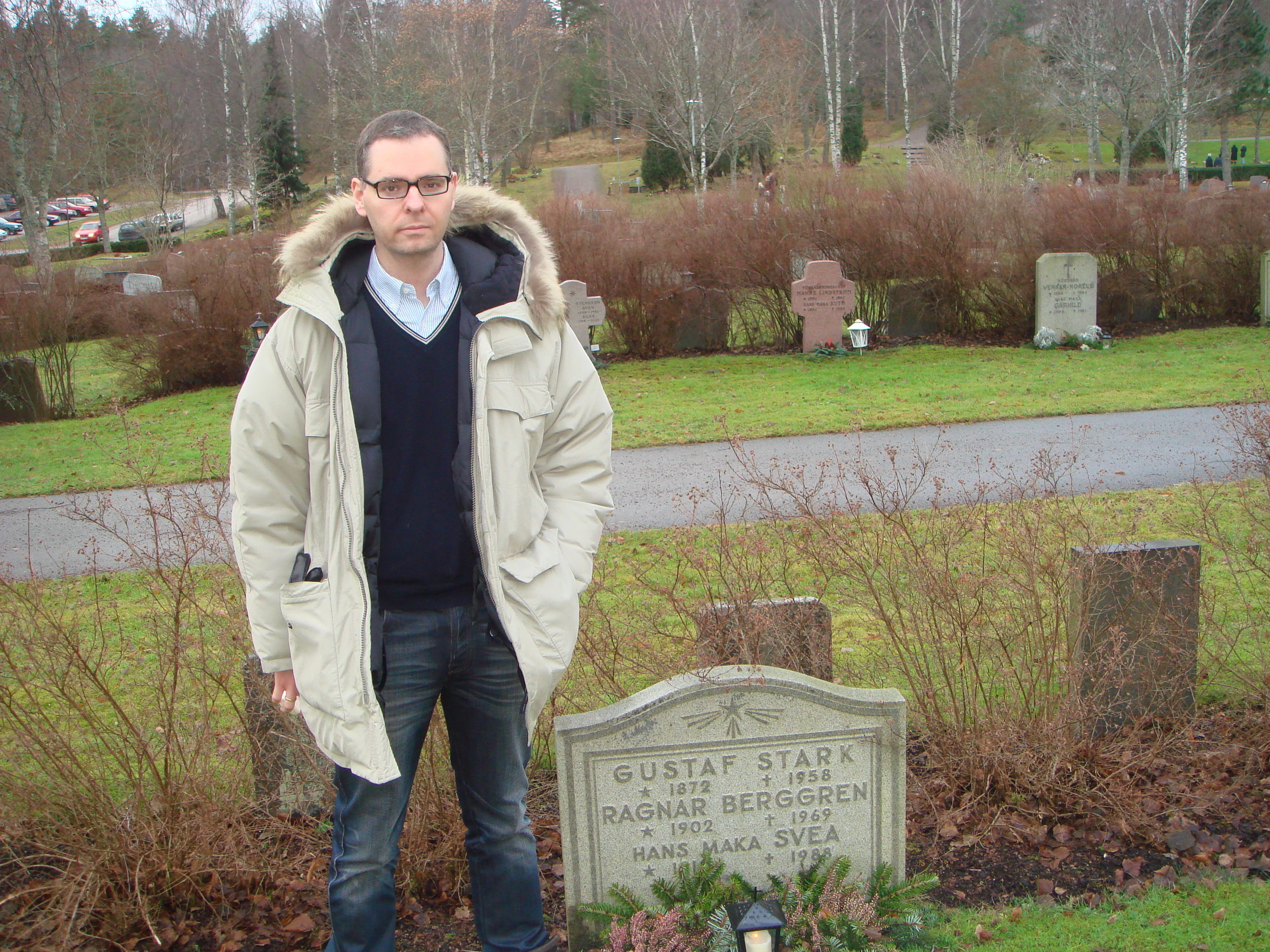 (På denna nytagna bild kan jag beskådas å Tranås griftegård, bredvid min farfars, farmors och gammelmorfars grav.)