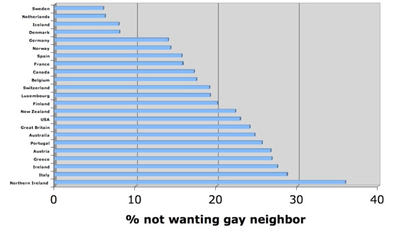 Det finns fortfarande rätt många som inte vill ha homosexuella grannar: