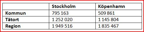 Jag hade fått för mig att det bor fler i Köpenhamn än i Stockholm. När jag just undersökte saken* fann jag att Stockholm har något fler invånare: