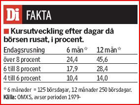 I fredags gick Stockholmsbörsen upp med 8,2 procent. DI rapporterar att rusningar av det slaget, åtminstone efter 1979, har tenderat att följas av mer varaktiga börsuppgångar: