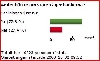 - Statligt ägande är ingen garanti för återhållsamhet. Tvärtom har staten genom SBAB under lång tid stoltserat med att pressa räntekostnaderna för lån, vilket knappast har dämpat dagens krisfenomen. Likaså var Nordbanken ägd till 70 procent av staten och var trots det lika insyltad i 90-talskrisen som privata banker. Samma problem har noterats i USA i samband med nuvarande kris.