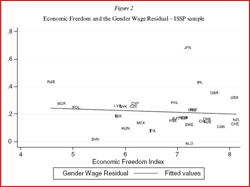 Gary Becker har framfört teorin att diskriminering tenderar att minska när graden av konkurrens ökar, eftersom det innebär en kostnad och konkurrensnackdel för företag att rata personal på andra grunder än låg produktivitet. I en ny studie, publicerad i Kyklos, undersöks i denna anda hur graden av marknadsekonomi är relaterad till löneskillnader mellan könen: