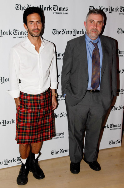 Modeoraklet Marc Jacobs och ekonomipristagaren Paul Krugman möttes igår på ett New York Times-arrangemang. Det är mycket svårt att avgöra vem som hade tjusigast outfit.