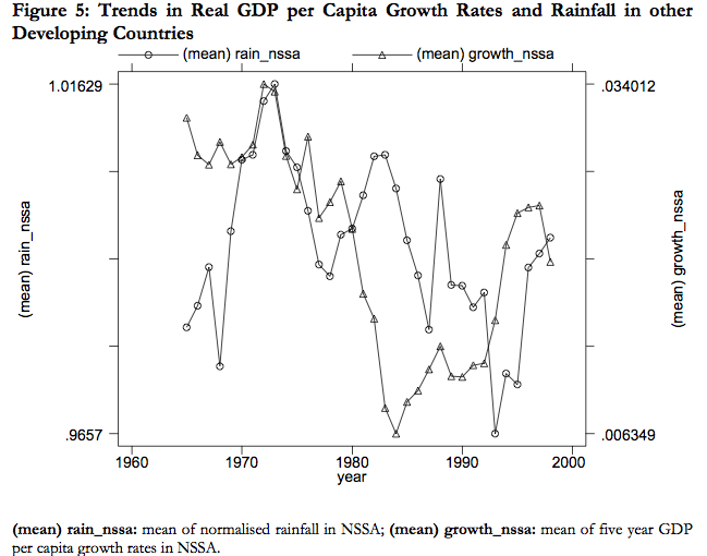 Afrikas välstånd har inte utvecklats särskilt väl jämfört med övriga utvecklingsländer. Ofta anses denna relativt dåliga utveckling bero på ekonomisk-politiska faktorer, som svaga rättssystem, handelshinder och korruption. En ny studie, ”Trends in Rainfall and Economic Growth in Africa: A Neglected Cause of the African Growth Tragedy”, publicerad i The Review of Economics and Statistics (preliminär gratisversion här), undersöker istället vädrets roll:
