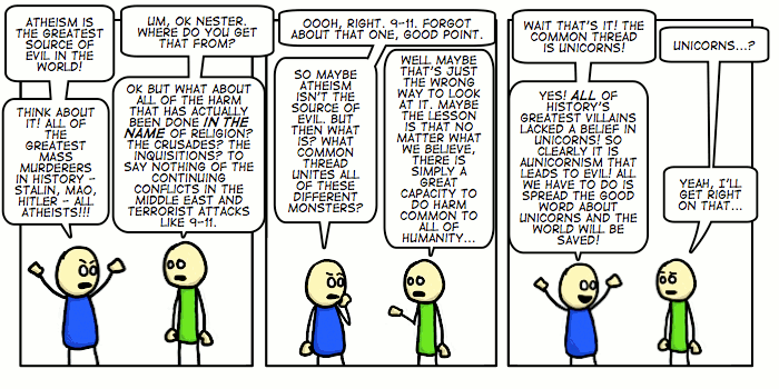 En av utgångspunkterna i religiöst tänkande är att jorden och människorna härpå är viktiga och föremål för någon guds uppmärksamhet. Bertrand Russell driver med denna typen av utgångspunkt i den härliga, korta texten ”The Theologian’s Nightmare”, som härmed återges som underhållande söndagsläsning:
