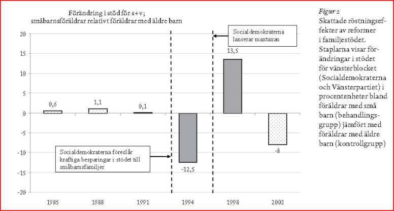 There is however a connection between active participation in government commissions and sympathies for the Social Democratic Party, the party forming the government 1994−2006. The Social Democratic Party is the most sympathized-with party among the most active scholars, with sympathies being 13.3 percentage units higher than in the least active group.