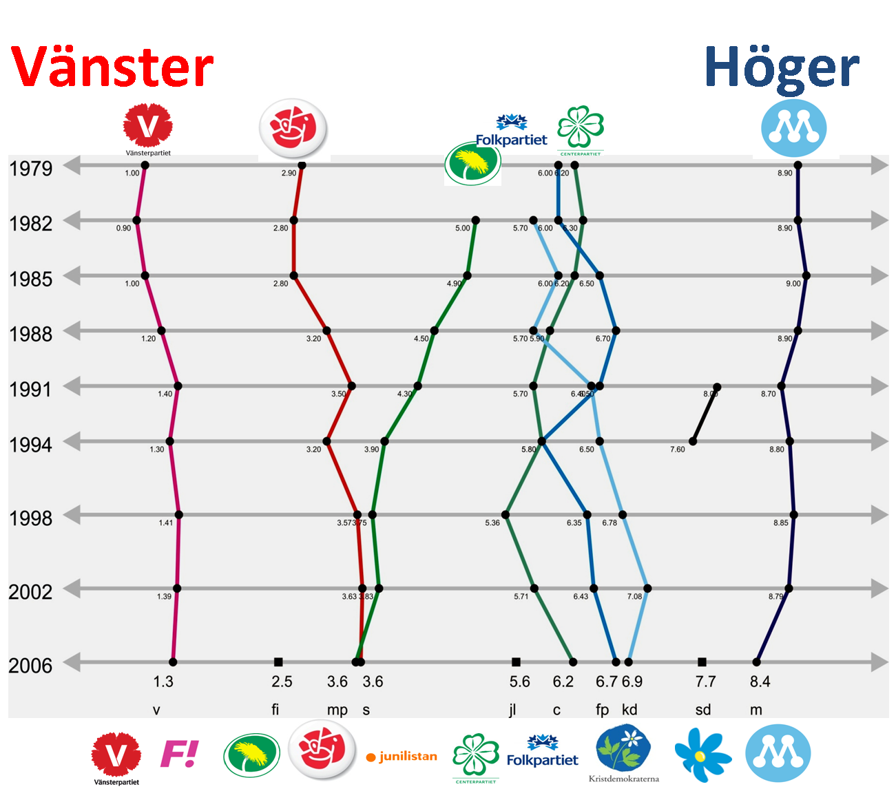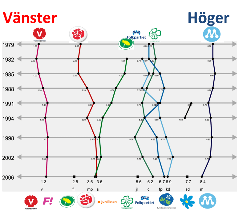 Närmare bestämt genomförde vi för några år sedan en webbenkät av forskare och lärare vid svenska universitet och högskolor. För att karakterisera politiska uppfattningar frågade vi bl.a. om partisympatier och vänster-högeridentifikation. Här presenterar jag några av resultaten, men det finns betydligt mer i uppsatsen och i ett Online Supplement. Det går förstås också bra att kontakta någon av oss tre författare vid frågor.